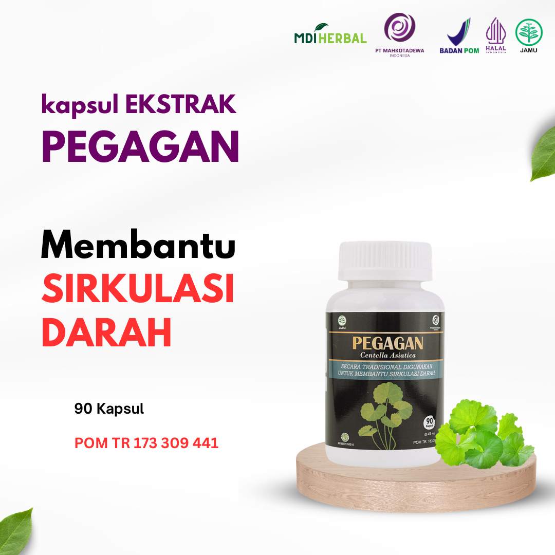 • Secara tradisional digunakan untuk membantu sirkulasi darah Cara Konsumsi : 3 x sehari 1 kapsul Tiap kapsul mengandung : Ekstrak Pegagan (Centella asiatica herba) 400 mg POM TR 163 394 011