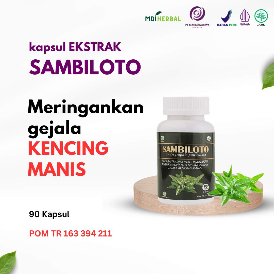 • Secara tradisional digunakan untuk membantu meringankan gejala kencing manis. Cara Konsusi : 3 x 1 kapsul sehari Tiap kapsul mengandung : ekstrak Sambiloto (Andrographis paniculata herba) 450 mg POM TR 163 394 211