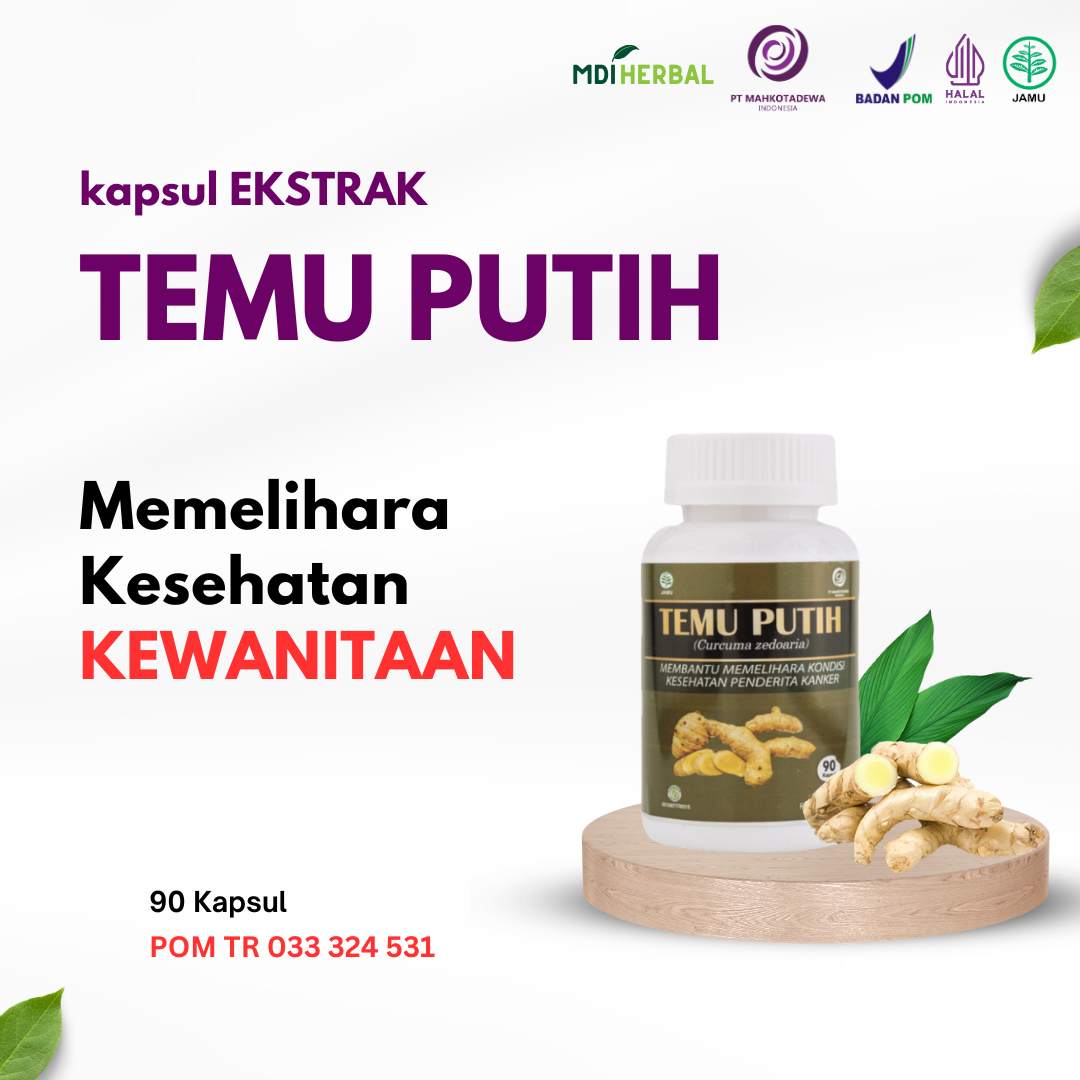 • Membantu memelihara kondisi kesehatan penderita kanker & kesehatan kewanitaan Cara Konsumsi : 3 x 1 kapsul sehari Tiap kapsul mengandung : Ekstrak Temu Putih (Curcuma zedoaria rhizome) 475 mg POM TR 033 324 531