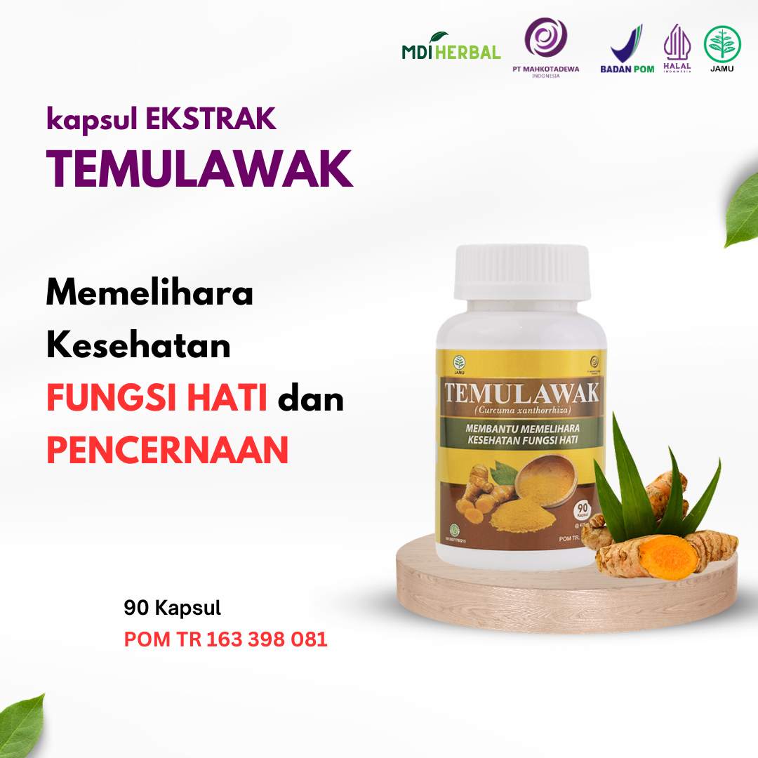 • Membantu memelihara kesehatan fungsi hati dan pencernaan Cara Konsumsi : 3 x 1 kapsul sehari Tiap kapsul mengandung : ekstrak Temulawak (Curcuma xanthorrhiza rhizome) 475 mg POM TR 163 398 081
