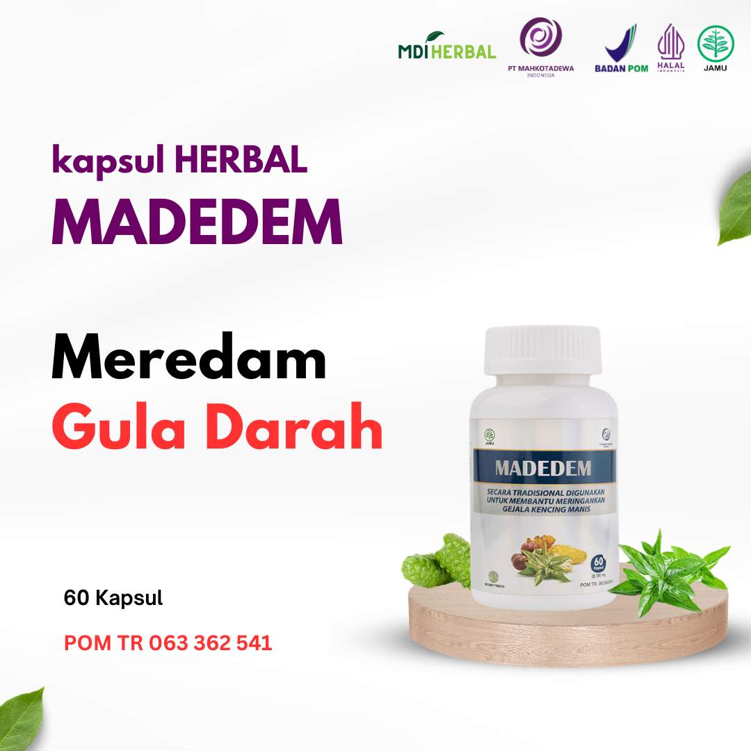 Secara tradisional digunakan untuk membantu meringankan gejala kencing manis. Cara Konsumsi : 1 x1 kapsul perhari, maksimum 3 x 1 kapsul sehari Tiap kapsul mengandung : Ekstrak Mahkota Dewa (Phaleria macrocarpa fructus) 28,75 mg Ekstrak Sambiloto (Andrographis paniculata herba) 23,75 mg Ekstrak Temulawak (Curcuma xanthorrhiza rhizome) 19,00 mg Ekstrak Mengkudu (Morinda citrifolia fructus) 23,75 mg