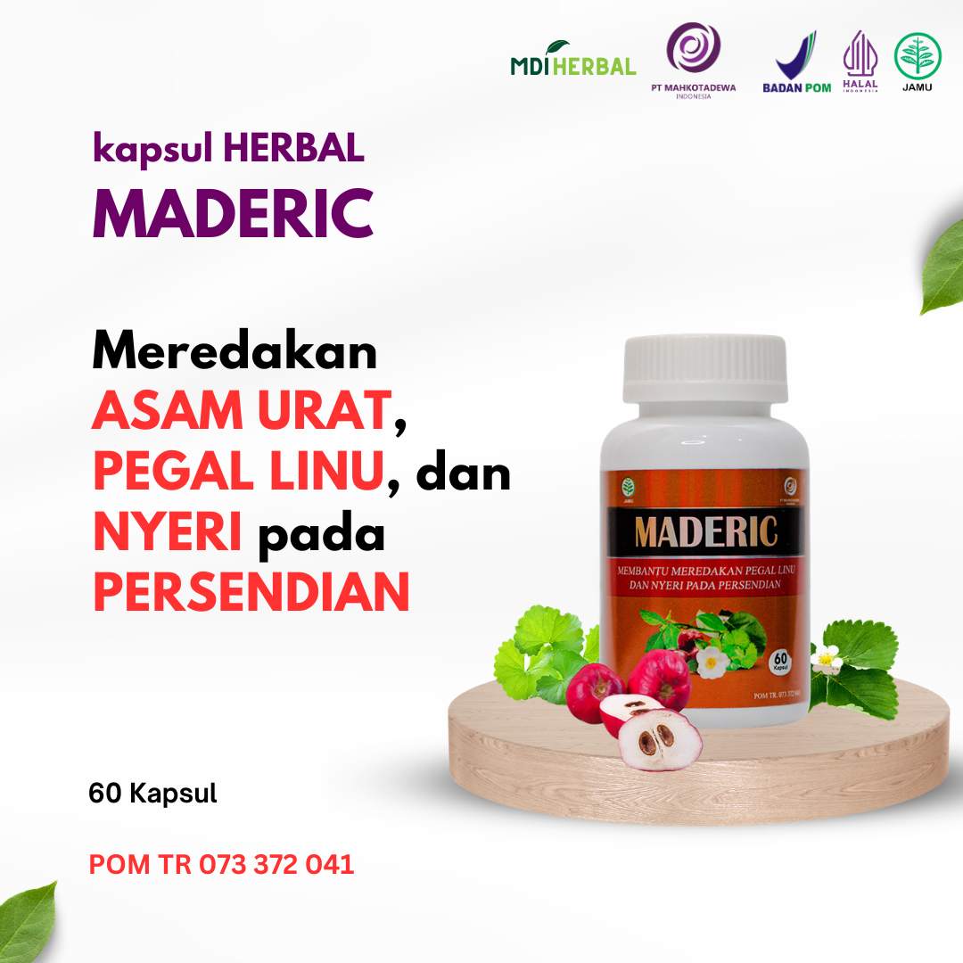 Membantu meredakan pegal linu dan nyeri pada persendian Cara Konsumsi : Maksimum 3 x 1 kapsul sehari Setiap kapsul mengandung ekstrak yang setara dengan : Mahkota Dewa (Phaleria macrocarpa fructus) 23,75 mg Daun Alpukat (Persea americana folium) 19.00 mg Sambung Nyawa (Gynura procumbens bulbus) 19.00 mg Sidaguri (Sida rhombifolia) 23.75 mg Pegagan (Centella asiatica herba)