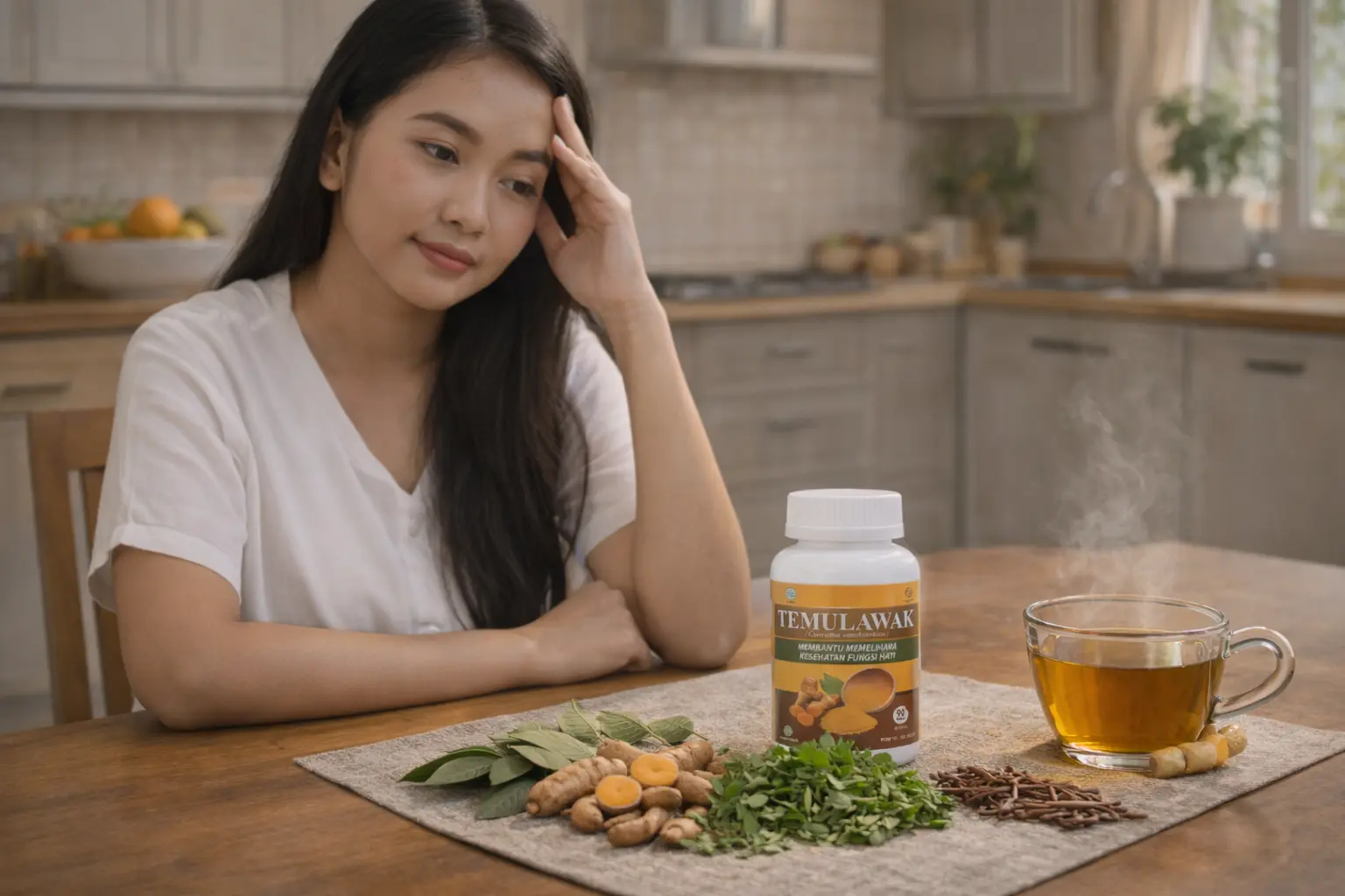 Membantu memelihara kesehatan fungsi hati; membantu memperbaiki nafsu makan. Cara Konsumsi: 1 sendok makan dicampur dengan air panas 1 gelas (200ml), diminum 1x sehari Tiap sachet (350gr) mengandung ekstrak yang setara dengan: Curcuma xanthorrhiza rhizoma (temu lawak) 168gr Piper betle folium (daun sirih) 2,5gr Cymbopogon citratus folium (serai) 3,5gr Citrus hystrix folium (daun jeruk) 8gr